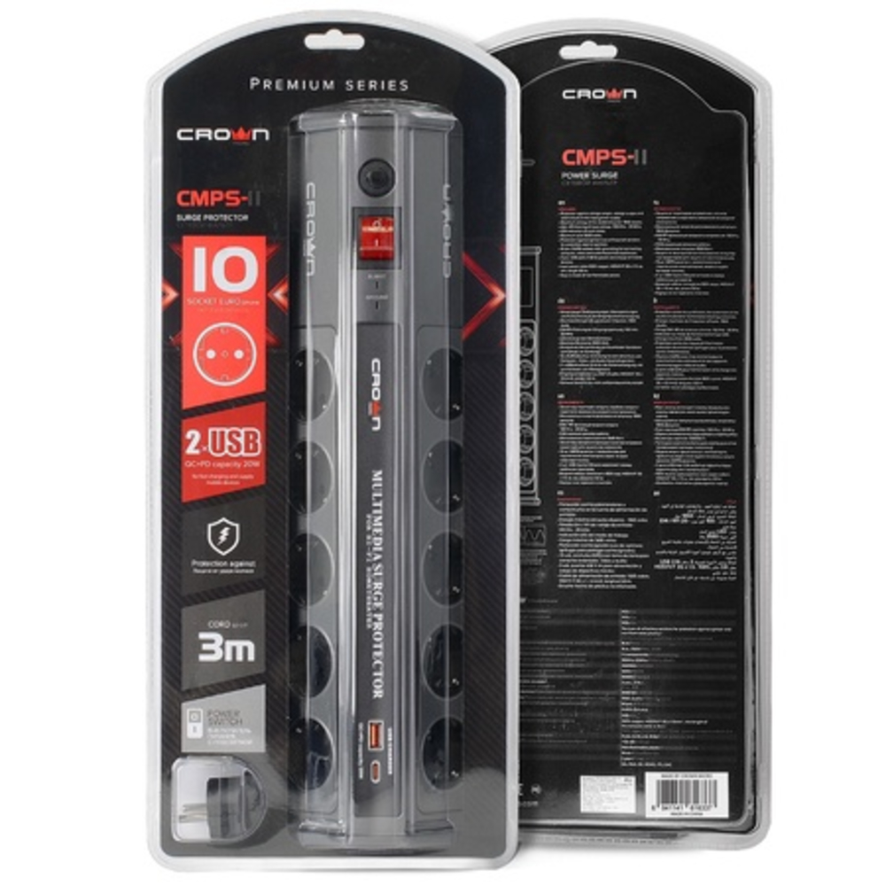 Сетевой фильтр CROWN CMPS-11 (3.0 м 10 розеток, графит)