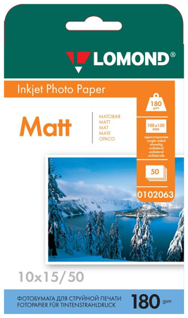 Фотобумага 10*15 180г/м2 50л Lomond 0102063 Матовая односторонняя