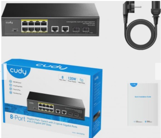 Коммутатор Cudy GS1010PS2 10/100/1000 BASE-T Gigabit Uplink ports, 2-1000 BASE-X SFP Slot, 8-port IEEE 802.3at PoE+ Injector