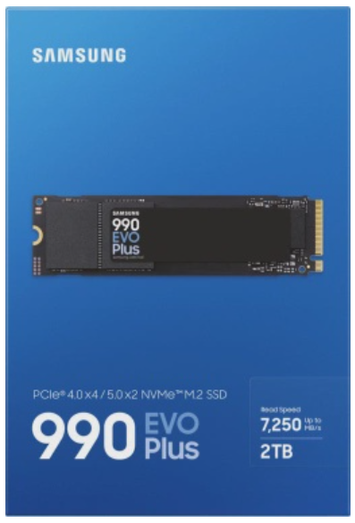 Накопитель SSD Samsung M.2 (PCI-E NVMe 2.0 Gen 4.0 x4) 2Tb Samsung 990 EVO plus (R6300/W7250MB/s) 1year MZ-V9S2T0BW