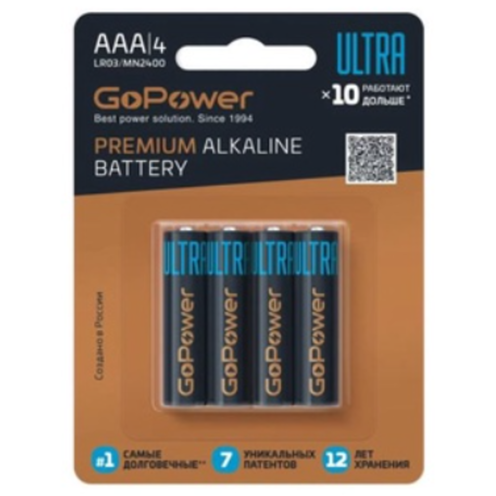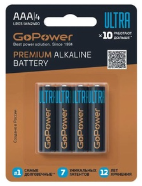 Батарейка GoPower ULTRA LR03 AAA BL4 Alkaline 1.5V (4/40/480) (4 шт.)