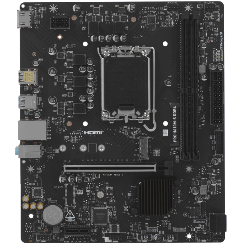 М/плата MSI PRO H610M-S DDR4 H610, LGA1700, 2*DDR4, 1*PCIEx16, 1*PCIEx1, 1*M.2, 2*USB3.2Gen1, 4*USB2.0, 2*SATA3.0, 1G, HDMI, M-ATX, RTL