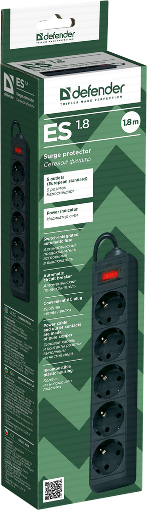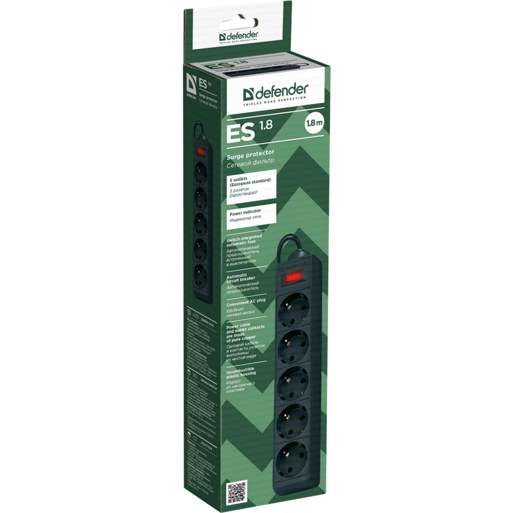 Сетевой фильтр Defender ES 1.8 м 5 розеток черный