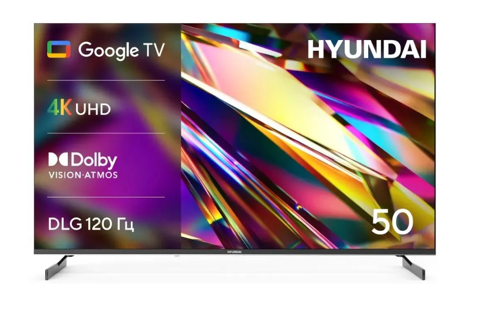 Телевизор LED Hyundai 50" H-LED50BU7011 Google TV Frameless черный 4K Ultra HD 120Hz DVB-T DVB-T2 DVB-C DVB-S DVB-S2 USB WiFi Smart TV <H-LED50BU7011>
