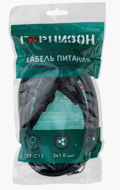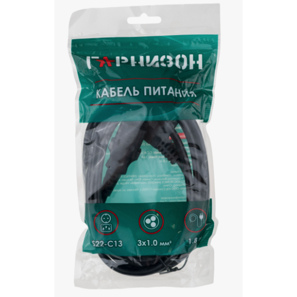 Кабель питания Гарнизон GPC-186-1-1.8M, Schuko-C13, 3x1.0 мм2, 16A, CCA, с заземлением, 1.8 м, черный, пакет <22951>