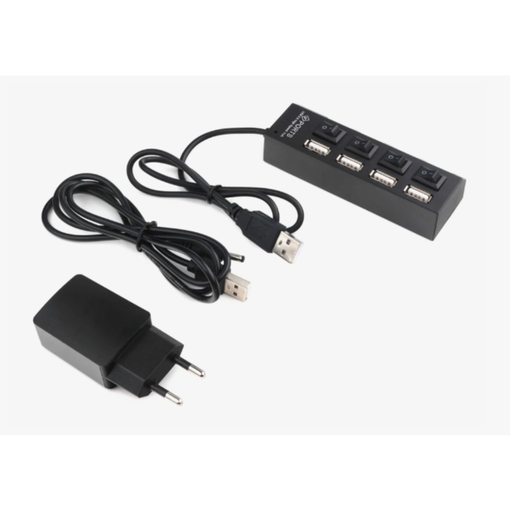 Разветвитель USB2.0 Gembird 4xUSB, блок питания 2А, подсветка и выкл, кабель USB 55 см, черный <UHB-U2P4-02A>