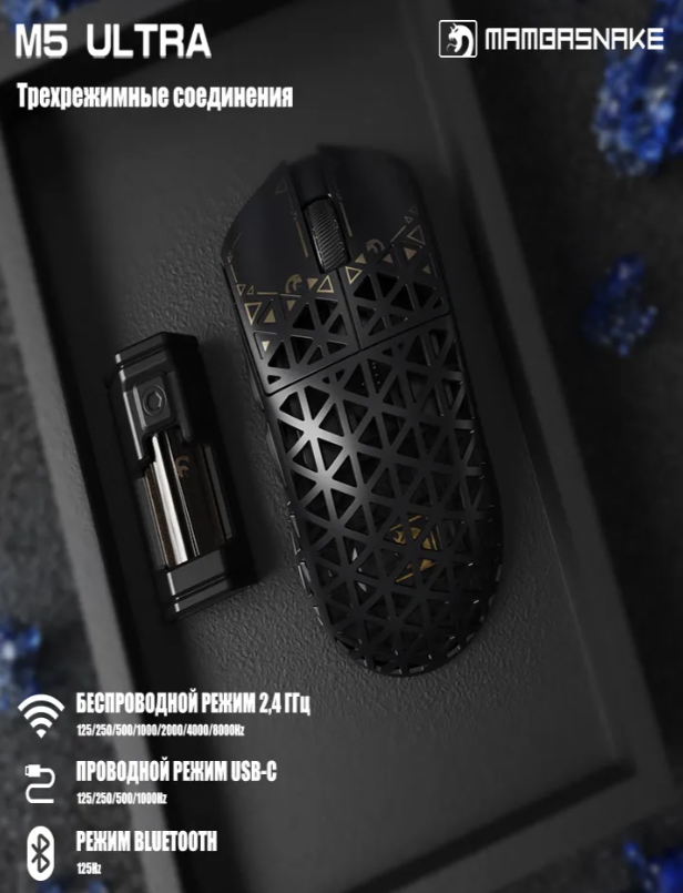 MAMBASNAKE Игровая мышь беспроводная M5 Ultra , черный матовый
